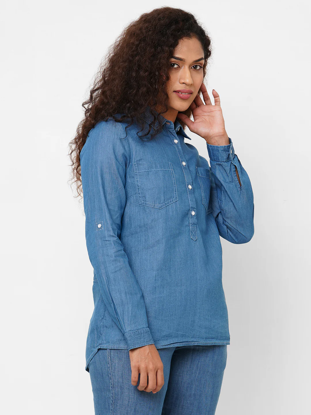 Women's Denim Cotton Viscose Regular Fit Blouse