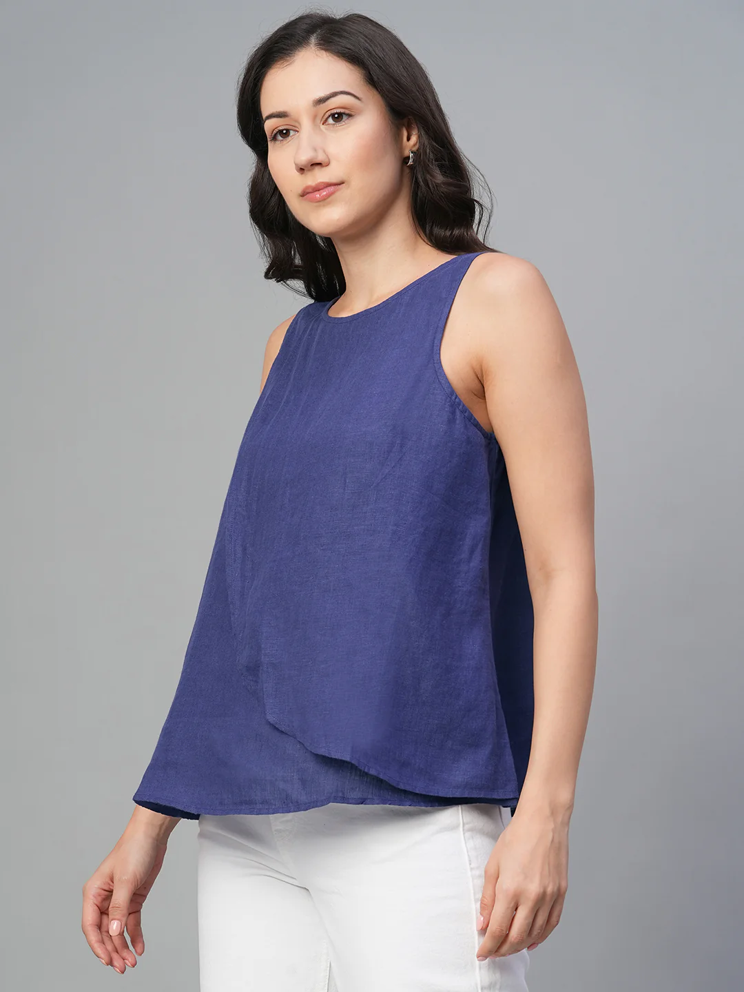 Women's Navy 100% Linen Regular Fit Blouse