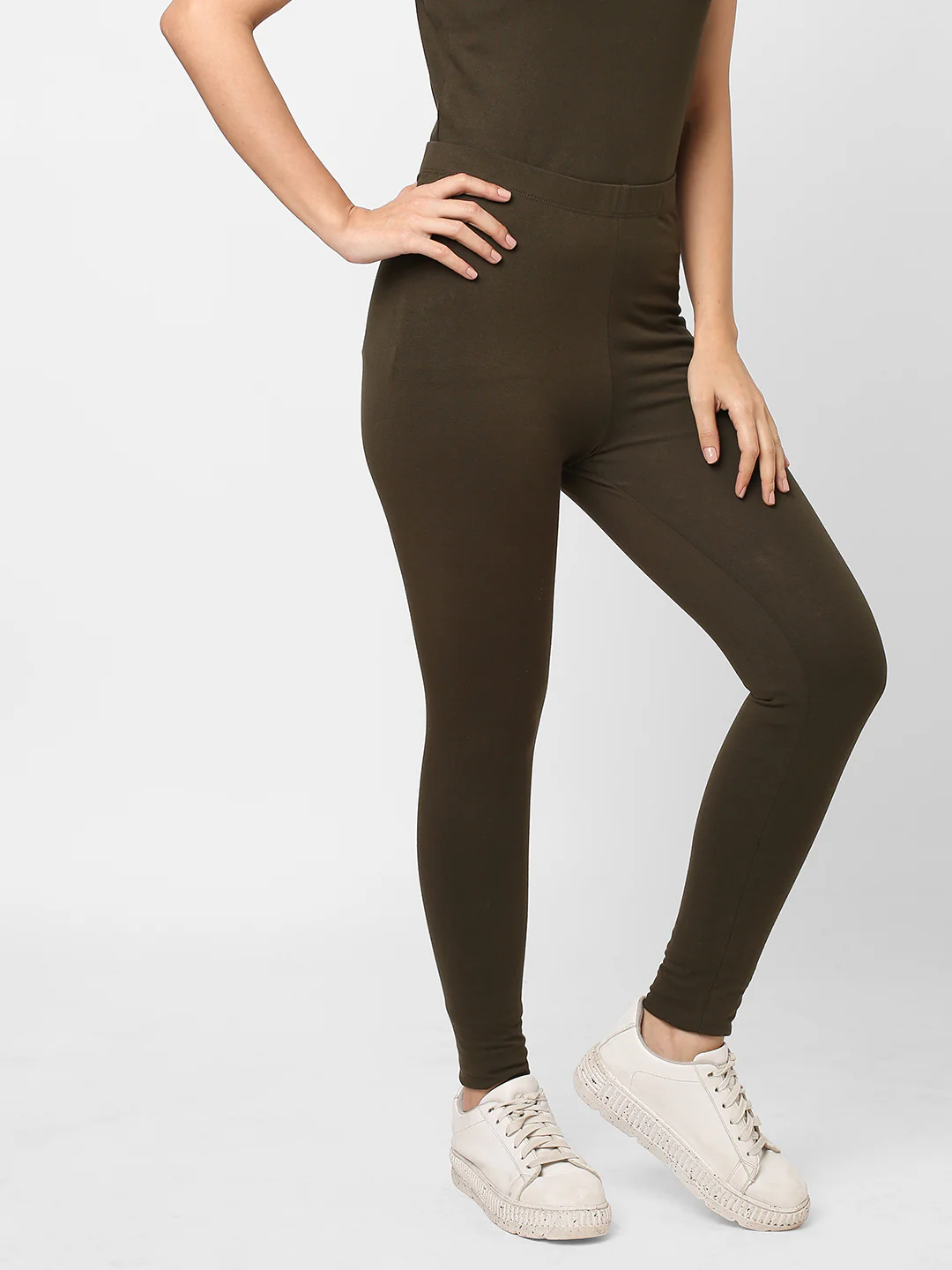 Women's Olive Cotton Elastane Slim Fit Knit Tights