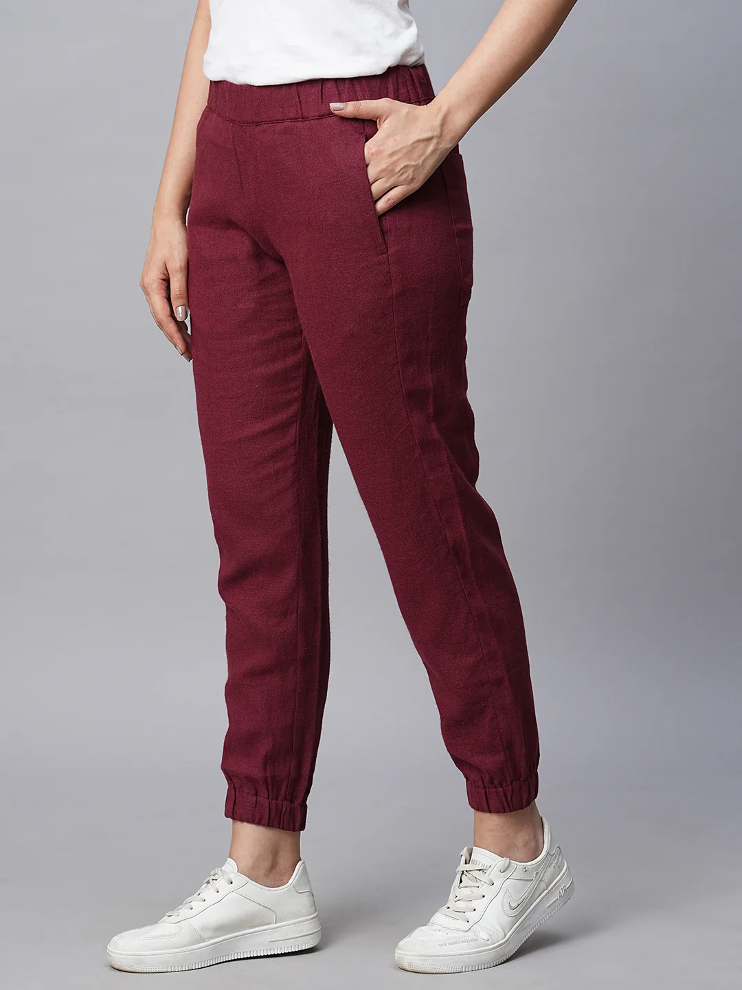 Women's Maroon/Red Linen Viscose Jogger Pant