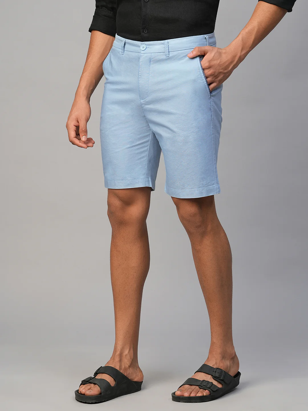 -70%Men's Blue Cotton Regular Fit Shorts—