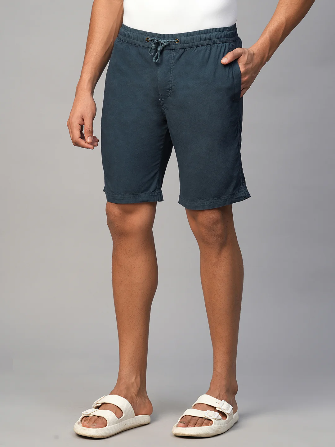 Men's Navy Cotton Regular Fit Shorts—