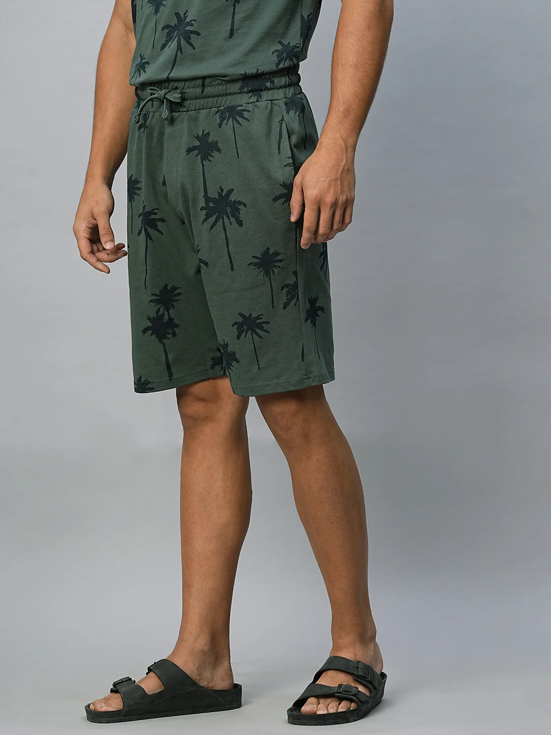 Men's Green Cotton Regular Fit Shorts